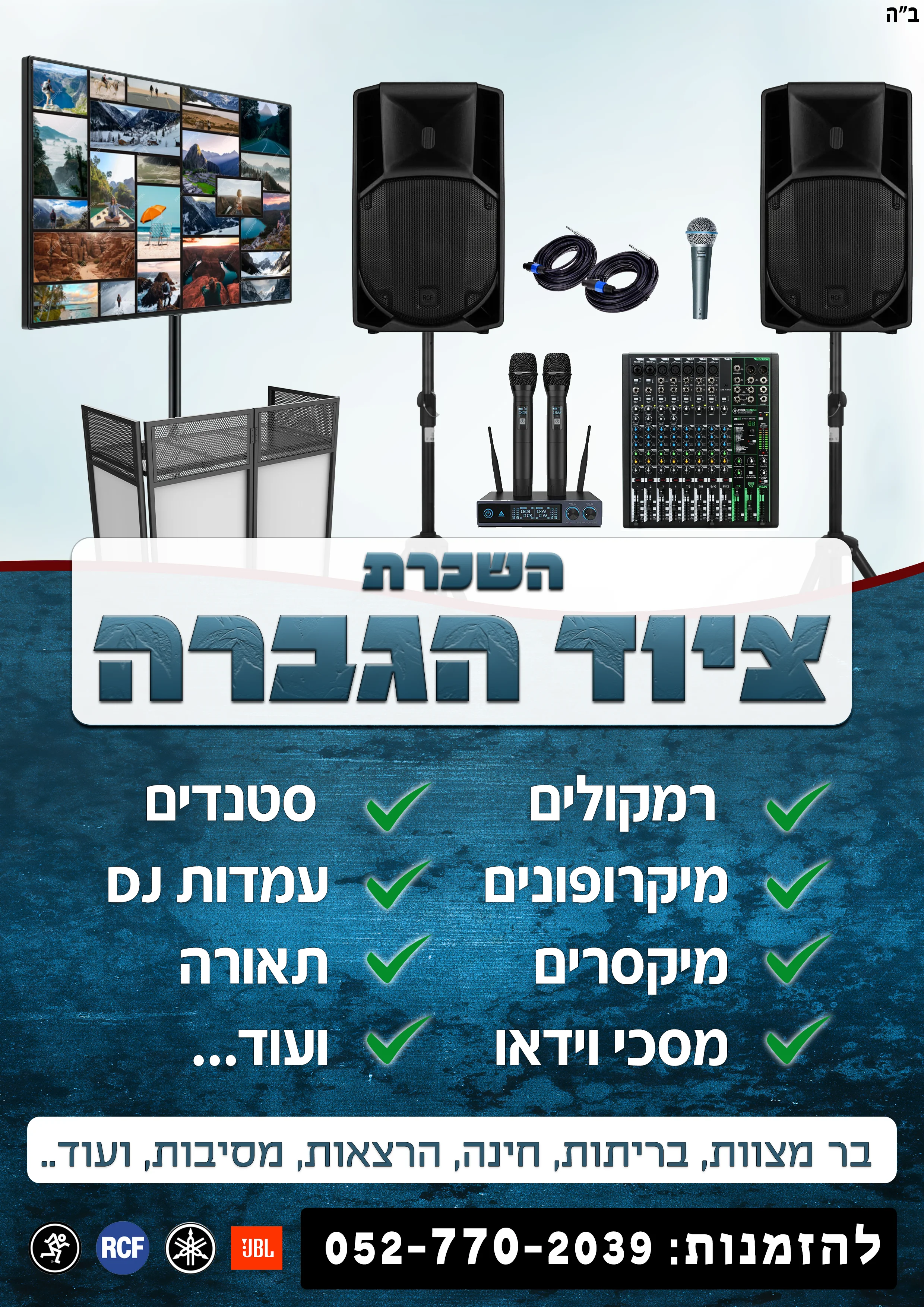 Maimon הגברה וסאונד מתמחים בהשכרת מערכות הגברה, סאונד ותאורה לאירועים פרטיים ועסקיים ביקנעם עילית והסביבה, ומספקים ציוד סאונד איכותי לאירועים מכל הסוגים – חתונות, ימי הולדת, מסיבות, כנסים, אירועי חברה, הופעות, טקסים ואירועי חוץ ופנים. ברשות העסק מערכות הגברה מקצועיות, רמקולים חזקים, מיקסרים, מיקרופונים אלחוטיים וציוד תאורה מתקדם, עם התאמה אישית מלאה לכל אירוע ולכל גודל קהל. Maimon הגברה וסאונד שמים דגש על איכות שמע גבוהה, אמינות ציוד ושירות אישי, ומלווים את הלקוח משלב התכנון ועד סיום האירוע, כך שאם אתם מחפשים השכרת הגברה ביקנעם עילית או השכרת סאונד לאירועים – זה פתרון מקצועי ואמין שידאג שהאירוע שלכם יישמע וייראה מושלם.